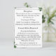 El diseño de Lace blanco y hojas de Rosa presenta el texto en un formato elegante que se muestra en un soporte blanco. El fondo muestra la imagen de encaje blanco. Las hojas de rosa verdes se colocan delicadamente en las esquinas. Al revés aparece el título "Los detalles". Un fondo blanco con un solo rosa sepia mostrado en la esquina inferior derecha. Todo el texto es personalizable.