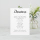 Direcciones blancas simples, o detalles, tarjetas de gabinete con texto negro. Esta tarjeta de 4x6 pulgadas tiene plantillas de texto modernas con título de guión en negrita en la parte superior y gran área para cualquier información debajo. En el área de plantilla se utiliza un tipo de letra impreso de fácil lectura, donde se pueden añadir direcciones al boda y/o recepción. O usar la tarjeta para proporcionar información de hotel/alojamiento a los huéspedes, o para cualquier otra necesidad.