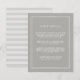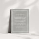 Elegante y sencillo, esta pequeña carta de color gris-beige neutro le permite compartir detalles clave con sus bodas. Diseñadas para coincidir con nuestra colección de bodas eternos, las tarjetas cuentan con un borde geométrico blanco y letras serif clásicas. ¿Se pregunta qué información incluir en un anuncio de invitación a la boda? Considere detalles como alojamiento en hotel, códigos de grupo, transporte, direcciones, información de recepción de bienvenida y url de su sitio web boda. Incluso puede cargar un mapa en el reverso usando la función Personalizar.