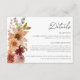 Comparte toda la información necesaria con esta tarjeta de detalles de boda de otoño con detalles de terracota, burdeos y suaves acentos florales naranjas. Perfecto para el alojamiento, la recepción o los detalles del registro. Coordina con nuestra suite matrimonial rústica de otoño.