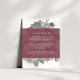 Diseñado para coordinar con nuestra floral colección de bodas en el Jardín Inglés de Marsala. Rica y elegante en tonos suaves de rosa negro y lujoso burdeos, nuestra tarjeta de detalles de los huéspedes del English Garden cuenta con un fondo de flores de peonía rosa y verde de color agua con un amplio balcón de marsala. Reemplace el texto de ejemplo con los detalles clave de la celebración de su boda. ¿Se pregunta qué información incluir en un anuncio de invitación a la boda? Considere detalles como alojamiento en hotel, códigos de grupo, transporte, direcciones, información de recepción de bienvenida y url de su sitio web boda. Incluso puede cargar un mapa en el reverso usando la función Personalizar.