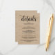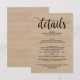 Recepción Tarjeta de detalles de la boda en la granja rústic