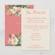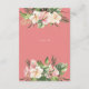 Esta tarjeta de detalles imprescindible incluye sus detalles en un tipo de letra serif moderno con un divertido encabezado de guión. Este es el lugar perfecto para tomar nota de los alojamientos y de otra información pertinente de los bodas. En la parte trasera se muestra la fecha de su boda acentuada por plumeria crema, lirios flamingo y vegetación sobre un fondo rosado.