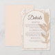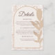 "Esta carta rústica de detalles bodas de taupe presenta elegantes líneas de arte botánico enmarcadas en un suave fondo neutro. Perfecto para bodas de inspiración natural, bohemia o minimalista, ofrece una manera elegante de compartir la información de recepción y alojamiento".