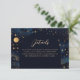 Comparta información importante con sus huéspedes con estilo usando esta tarjeta de detalles de boda celestial boho. Esta tarjeta de doble cara, con un cielo nocturno en la marina, estrellas doradas brillantes y una caligrafía elegante, es ideal para incluir su sitio web boda, alojamiento, direcciones, detalles de recepción o instrucciones RSVP. Un impresionante monograma y un diseño celestial en la parte posterior le dan un toque mágico y personalizado, perfecto para una noche estrellada y bodas con temática boho. Incluye un impresionante diseño de monograma nocturno estrellado en la parte posterior para una presentación inolvidable.