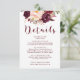 Recepción Tarjeta de detalles del Boda de Borgoña Floral