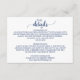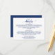 Esta tarjeta azul marino de detalles de bodas caligráficos es perfecta para una boda elegante. El diseño blanco y azul presenta una tipografía rústica de moda y un bonito corazón romántico.