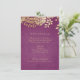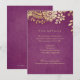 Elegante diseño de encaje floral vintage en un Relieve metalizado dorado chispeante sobre fondo morado de orquídea radiante, moda y romántico, ideal para una boda vintage moderna en otoño e invierno. Vea todas las piezas coincidentes de la colección a continuación.