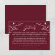 Este bonito recinto rústico de boda cuenta con un bonito fondo de color burdeos con flores silvestres dibujadas a mano blancas y una tipografía elegante. Utilice esta plantilla de tarjeta para obtener detalles, direcciones, alojamiento, etc. Es el diseño perfecto para una boda rústica y elegante. Este diseño se coordina con nuestra colección Rustic Wildflower Boda... ver la colección para más artículos!