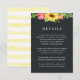 La parte delantera de la tarjeta está decorada con girasoles en la parte superior, adornada con flores rosas y vegetación. Edita todo o parte del texto. Puede añadir cualquier detalle que necesite, por ejemplo: información de recepción, evento sólo para adultos, dirección del sitio web, información del registro, alojamiento, código de vestimenta, barra de caja, etc. La parte posterior de la invitación tiene un patrón de rayas de color amarillo claro. Esta tarjeta coincide con una colección de mi tienda.