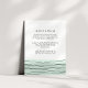 Diseñada para coordinar con nuestra colección de bodas de Linación en el Mar, esta tarjeta de inserción de invitación incluye detalles clave para sus huéspedes, acentuada por líneas geométricas cruzadas negras y un bloque de color bajo capa en verde de lazo puro. ¿Se pregunta qué información incluir en un anuncio de invitación a la boda? Considere detalles como alojamiento en hotel, códigos de grupo, transporte, direcciones, información de recepción de bienvenida y url de su sitio web boda. Incluso puede cargar un mapa en el reverso usando la función Personalizar.