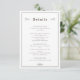 Añada un toque de romance occidental a su suite boda con nuestra tarjeta de gabinete Sunset Horseback Silhouette Details. Con las siluetas de una novia y un novio a caballo con el fondo de la puesta de sol, esta tarjeta proporciona toda la información esencial que sus huéspedes necesitan. El encanto rústico y el diseño elegante lo convierten en una adición perfecta a su celebración de temática occidental, asegurando que sus huéspedes estén bien informados y entusiasmados por su día especial.