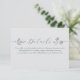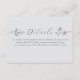 Comparte todos los detalles importantes del boda con estilo con esta elegante tarjeta de gabinete. Con una delicada acuarela plateada y un guión limpio de serif, es la adición perfecta a cualquier suite boho o boda de invierno moderna. Utilícelo para incluir información del sitio web de RSVP, instrucciones de recepción, alojamiento o detalles del código de vestimenta.