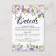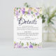 Recepción Tarjeta de detalles del Boda floral de crema púrpu