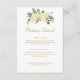 Bonita tarjeta de detalles florales con flores marfil de color blanco. Esta plantilla es para información de bodas como alojamiento, direcciones y otros detalles que puede desear que sus invitados conozcan.
