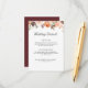 Bonita tarjeta de detalles florales con flores de color dorado y burdeos. Esta plantilla es para información de bodas como alojamiento, direcciones y otros detalles que puede desear que sus invitados conozcan.