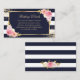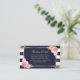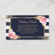 Elegante tarjeta de inserción boda floral a rayas azul marino y blanco con flores color agua rosa rubor y verde dorado. Elementos coincidentes disponibles.