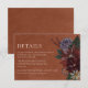Comparte la importante información con estilo con esta carta de detalles de terracota que presenta flores amorosas y encanto rústico. Ideal para direcciones, alojamiento o detalles del sitio web del boda, y diseñado para coincidir con la suite de invitación completa.