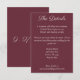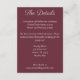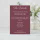 Esta tarjeta de detalles imprescindible incluye el título en un guión animado y sus detalles en un tipo de letra serif moderno. Este es el lugar perfecto para tomar nota de los alojamientos y de otra información pertinente de los bodas. La parte posterior muestra su fecha boda.