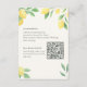 Elegante tarjeta de detalles de boda con un diseño de limón y vegetación de acuarela que incluye un claro cronograma del día y código de vestimenta en el anverso. El reverso incluye información de alojamiento y un código QR que los invitados pueden escanear para acceder a detalles de viaje, RSVP y actualizaciones en el sitio web de su boda, lo que la convierte en una compañera práctica para su suite de invitaciones de boda cítricas.