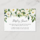Desliza estas pequeñas tarjetas en tu ducha de bebé o invitaciones a ducharse de novia cuando pidas que los invitados traigan sus regalos sin envoltura. Moda acuarela de diseño floral en blanco suave y verde eucalipto concuerda con nuestra colección de invitaciones de Alabaster Floral. Un poema dulce explica el concepto de "ducha de pantalla" y la solicitud, y puede ser modificado para adaptarse a tus necesidades. Personaliza con el nombre y la ducha del invitado de honor en la parte inferior.