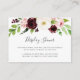 Desliza estas pequeñas tarjetas en tu ducha de bebé o invitaciones a ducharse de novia cuando pidas que los invitados traigan sus regalos sin envoltura. El diseño floral de moda cuenta con un grupo de flores de color rosa, marfil y burdeos y follaje verde que concuerda con nuestra colección de invitaciones de Rubor Romance. Un poema dulce explica el concepto de "ducha de pantalla" y la solicitud, y puede ser modificado si lo desea.