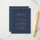 Proporcione a sus invitados los detalles importantes con esta elegante tarjeta de encerramiento de boda azul marino y beige que presenta una fuente de escritura moderna. Artículos coincidentes disponibles. Solicitudes personalizadas son bienvenidas.