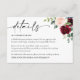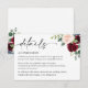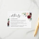 Tarjeta de Detalles de Boda con Flores Burgundy y Blush Boho. Esta tarjeta se caracteriza por rosas y flores burgundy y blush boho con dos fuentes modernas de alta clase que dan forma a las tendencias de los eventos festivos presentes y futuros.