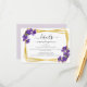 La Tarjeta de Detalles de Boda de Violetas Moradas Profundas ofrece un equilibrio perfecto de elegancia, sofisticación y personalización. Con su diseño minimalista y moderno que presenta violetas boho de acuarela morada profunda, esta tarjeta sirve como una adición elegante y práctica a tu papelería de boda, proporcionando detalles esenciales a tus invitados mientras mejora la estética general de tu suite de invitaciones.