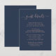 Proporcione a sus invitados detalles importantes con esta elegante tarjeta de encerramiento de boda azul marino y rubor que presenta una fuente de escritura moderna. Artículos coincidentes disponibles. Solicitudes personalizadas son bienvenidas.