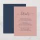 Recepción Tarjeta de Encierre de Boda Elegante Azul Marino y