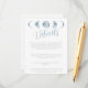 Realza el encanto celestial de la papelería de tu boda con nuestra tarjeta de inclusión de la colección Azul Celestial Fases de la Luna Minimalista. Este diseño presenta un fondo blanco limpio que permite que los elementos celestes brillen. Centradas en la parte superior de la tarjeta están las cinco fases de la luna mostradas en un hermoso color azul claro, lo que añade un toque de belleza celestial al diseño.