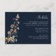 Tarjeta de gabinete Boho Navy Blue Wildflower. Eleva tu papelería boda con esta tarjeta de detalles de flores silvestres del Boho Azul de la Marina, donde la belleza de la naturaleza se une a la sofisticación sin esfuerzo. Una mariposa pintada a mano descansa delicadamente entre las flores silvestres acuáticas en una cálida terracota, roya, púrpura y azul, ambientada en un rico fondo azul marino para un sorprendente contraste. Los acentos botánicos y los detalles de inspiración vintage crean un ambiente romántico y orgánico, perfecto para cualquier temporada. Personalizable completo para que se ajuste a su celebración única: edite la redacción, experimente con estilos y tamaños de fuente, o cambie el fondo para complementar el tema boda. Una manera muy artística de compartir detalles importantes con sus invitados, ¡empiece a crear un diseño tan único como su historia de amor hoy!
