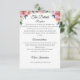 Un guion adorable de escritura formal color melocotón rosado y color peony floral tarjeta de gabinete para las invitaciones de boda. Añade toda la información necesaria.