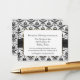 Elegante tarjeta de gabinete de información sobre bodas hecha con un elegante diseño de damasco blanco y negro. Gráficos de área de texto blanco de borde dorado, con texto negro personalizado. Personaliza el texto con lo que quieras que tus invitados sepan, información de recepción, sitios web. Productos bodas a juego disponibles.