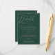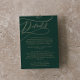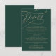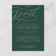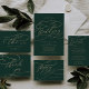 Esta romántica tarjeta de alojamiento con detalles de caligrafía verde es perfecta para un boda sencillo. El moderno diseño clásico presenta vistosos remolinos y florituras con una preciosa y elegante tipografía de Relieve metalizado de oro con chaflán a mano con letras falsas y oro. Nota: Este diseño no tiene Relieve metalizado oro real. Es un gráfico de alta calidad hecho para parecer un Relieve metalizado dorado.