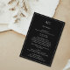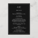 Elevar su boda con esta tarjeta de gabinete de detalles de boda de monograma negro, diseñada para reflejar la simplicidad y la elegancia intemporal. Con un elegante fondo negro y un sofisticado monograma, esta tarjeta minimalista es perfecta para compartir detalles importantes del boda con sus huéspedes.