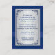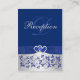 Esta elegante y romántica tarjeta monogramada de recepción floral azul real y gris plateado tiene una cinta y un arco IMPRESIONADOS, con un par de joyas de diamante IMPRESIONADAS y un purpurina simulado de FAUX se une al broche de corazones que coincide con las invitaciones de boda que se muestran a continuación. También se puede personalizar que sea una tarjeta de direcciones, una tarjeta de alojamiento, una tarjeta de registro de regalos, una tarjeta del sitio web del boda, una tarjeta de pozo o caridad de deseos, o una tarjeta de información general cambiando el texto en consecuencia. Si hay otros elementos coincidentes que necesite, envíe su solicitud a niteowlstudio@gmail.com.