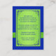 Esta elegante y romántica tarjeta floral de recepción de color azul real y verde limón tiene una cinta y un arco IMPRESIONADOS, con un par de joyas de diamante IMPRESIONADAS y un purpurina simulado de FAUX se unió al broche de corazones que coincide con las invitaciones de boda que se muestran a continuación. También se puede personalizar que sea una tarjeta de direcciones, una tarjeta de alojamiento, una tarjeta de registro de regalos, una tarjeta del sitio web del boda, una tarjeta de pozo o caridad de deseos, o una tarjeta de información general cambiando el texto en consecuencia. Si hay otros elementos coincidentes que necesite, envíe su solicitud a niteowlstudio@gmail.com.