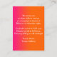 Esta original y salvaje tarjeta del recinto de la recepción, con un anverso frente y rosa y naranja calientes de vuelta, tiene viñas de flores de color verde neón, naranja, rosa, púrpura, amarillo y azul y mariposas, que concuerdan con la invitación a Bat Mitzvah que se muestra a continuación. También puede utilizarlo como mapa o tarjeta de direcciones o tarjeta de información cambiando el texto en consecuencia. ****POR FAVOR, NOTE que todo se imprimirá tal como lo ves en tu monitor. No veré tu producto y Zazzle NO editará nada para tipografía, alineación, etc., así que asegúrate de que todo tu texto esté centrado y libre de errores. Si necesitas ayuda, por favor envíame un correo electrónico ANTES de realizar tu pedido. Si necesita algún elemento coincidente, envíe su solicitud a niteowlstudio@gmail.com.