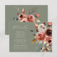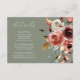 Comparta con facilidad detalles importantes de boda utilizando esta elegante tarjeta de cubierta verde salada, con un impresionante ramo floral de acuarela en tonos cálidos y tierra. Perfecto para incluir información sobre el lugar, alojamiento o la página web de su boda, esta tarjeta le da un toque romántico y cohesivo a su suite de papelería. Fácilmente personalizar para adaptarse a su celebración.