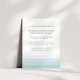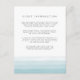 La elegante tarjeta de información de los huéspedes con acuarela presenta bandas de gradiente oscuro de turquesa de verano brilloso a lo largo del fondo para un efecto de tinte de moda. Reemplace el texto de ejemplo con los detalles clave de la celebración de su boda. Diseñado para coordinar con nuestra colección de invitaciones nupciales de Dip Dye en Aqua. ¿Se pregunta qué información incluir en un anuncio de invitación a la boda? Considere detalles como alojamiento en hotel, códigos de grupo, transporte, direcciones, información de recepción de bienvenida y url de su sitio web boda. Incluso puede cargar un mapa al reverso usando la función personalizar it. ¿Necesita ayuda con la redacción o el formato? ¡Me encantaría ayudar! Comuníquese con Kristen a través del enlace "contacte con este diseñador".