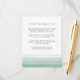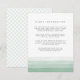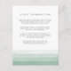 La elegante tarjeta de información de los huéspedes con acuarela presenta bandas de gradiente sombrío de verde abeto a lo largo del fondo para un efecto de tinte de moda. Reemplace el texto de ejemplo con los detalles clave de la celebración de su boda. Diseñado para coordinar con nuestra colección de invitación a la boda Dip Dye en verde primavera de Fern. ¿Se pregunta qué información incluir en un anuncio de invitación a la boda? Considere detalles como alojamiento en hotel, códigos de grupo, transporte, direcciones, información de recepción de bienvenida y url de su sitio web boda. Incluso puede cargar un mapa al reverso usando la función personalizar it. ¿Necesita ayuda con la redacción o el formato? ¡Me encantaría ayudar! Comuníquese con Kristen a través del enlace "contacte con este diseñador".