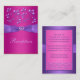 Esta tarjeta de recepción floral, rosa fucsia y violeta, tiene una cinta imprimida púrpura y una gema IMPRESA y una hebilla de diamante que se corresponden con la invitación a la boda que se muestra a continuación. Todo se imprimirá exactamente como aparece en su monitor. También puede personalizar que se trate de una tarjeta de registro de regalos, una tarjeta de sitio web del boda, una tarjeta de alojamiento, una tarjeta de información o una tarjeta de direcciones cambiando el texto en consecuencia. Si hay otros elementos coincidentes que necesite, envíe su solicitud a niteowlstudio@gmail.com.