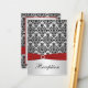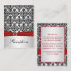 Esta tarjeta del recinto de recepción de damasco gris rojo y plateado tiene una cinta roja IMPRESA y una hebilla de joyas de diamante IMPRESIONADA que se corresponde con las invitaciones de boda que se muestran a continuación. También se puede modificar para que sea una tarjeta de direcciones, una tarjeta de registro de regalos, un alojamiento u otra tarjeta de información del boda cambiando el texto en consecuencia. Si necesita algún elemento adicional que coincida, envíe un correo electrónico a niteowlstudio@gmail.com con su solicitud.