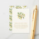 Simplifique los detalles de su evento con la tarjeta de envoltorio Lemon Floral, un complemento de su ducha nupcial muy bien diseñado. Esta tarjeta contiene limones pintados a mano y flores, lo que garantiza a los huéspedes todo lo que necesitan para sentirse bien recibidos e informados. Que este toque reflexivo mejore la elegancia de su celebración.