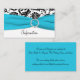 Esta tarjeta de gabinete de damasco blanco y negro tiene una cinta IMPRESORA azul acuático y un broche de joyas de diamante IMPRESIONADO que sería perfecto para un boda con temática de agua y negro. Algunos de los papeles alterarán el color del diseño, por lo que hay que tener cuidado si se elige uno de los tipos de papel además del blanco básico que se muestra aquí. TAMBIÉN, si cambia el tamaño de la tarjeta, o si cambia las fuentes, o el tamaño del tipo de letra, parte del diseño y/o el texto puede ser cortado. Todo se imprimirá como lo ves en tu monitor. No veré tu tarjeta, y Zazzle NO corregirá nada (tipografía, desalineación, etc.). El texto y el papel son todos personalizables. Si necesitas ayuda con esta tarjeta, por favor envíame un correo electrónico ANTES de realizar tu pedido. Si necesita cualquier otro elemento coincidente, envíe su solicitud a niteowlstudio@gmail.com