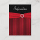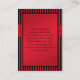 Esta tarjeta de gabinete de boda rayado rojo y negro tiene una cinta y joyas de imitación rojas y un punto para que añada información importante de los bodas en la parte posterior. Coincide con la invitación a la boda que se muestra a continuación. Puede utilizarla como tarjeta de recepción, tarjeta de direcciones, tarjeta de registro de regalos o tarjeta de información del hotel cambiando el texto en consecuencia. Si hay otros elementos coincidentes que necesite, envíe su solicitud a niteowlstudio@gmail.com.