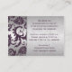 Esta moderna tarjeta de recepción con damasco floral de color púrpura y gris plateado combina con las invitaciones de boda que se muestran a continuación. También puede personalizar que sea un mapa o una tarjeta de direcciones cambiando el texto en consecuencia. ****NOTE que esta tarjeta no tiene biselado ni estampado. Si necesita cualquier otro elemento que coincida en este diseño, envíe un correo electrónico a niteowlstudio@gmail.com con su solicitud.