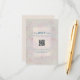 Personalizado exclusivo sofisticado y elegante tarjeta de gabinete Wedding con código QR y sitio web, para RSVP en línea. Diseñado en un estilo elegante, sutilmente y suavemente con acentos texturales salpicados de cobre enmarcados en un fondo azul suave y rosa con texto azul. Puede personalizar el texto a sus necesidades.